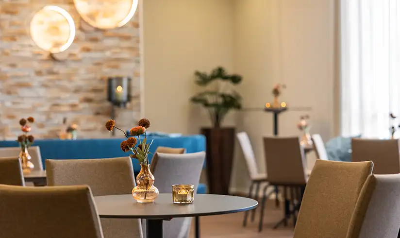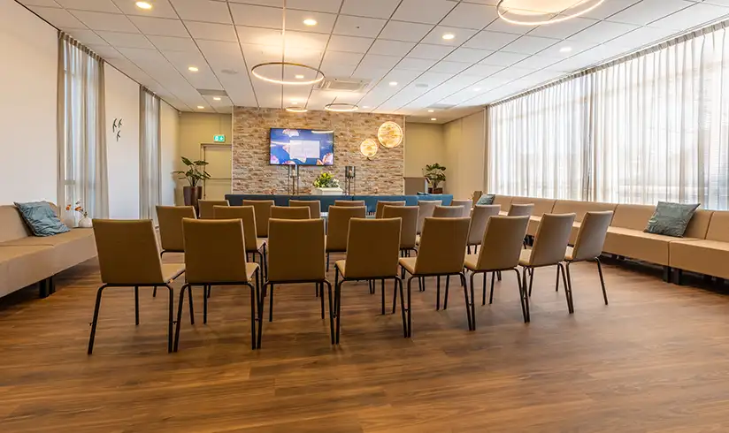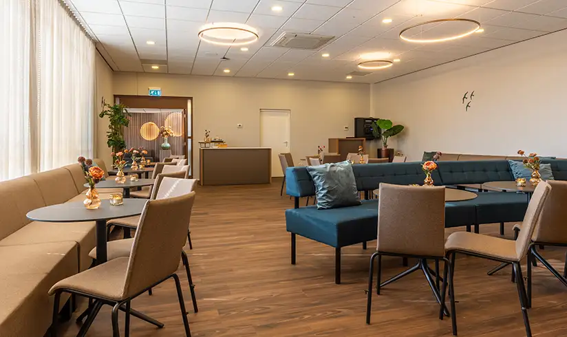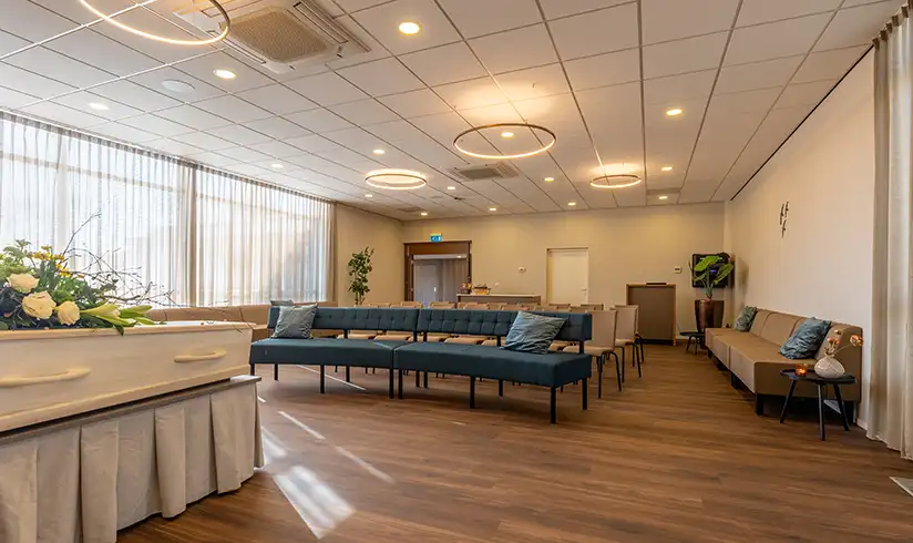 Als er in de aula van ons uitvaartcentrum een uitvaartdienst wordt gehouden, is de aula na terugkomst van de begraafplaats of het crematorium omgebouwd tot een sfeervolle koffiekamer. Je hebt hier alle tijd om na te praten en herinneringen op te halen.